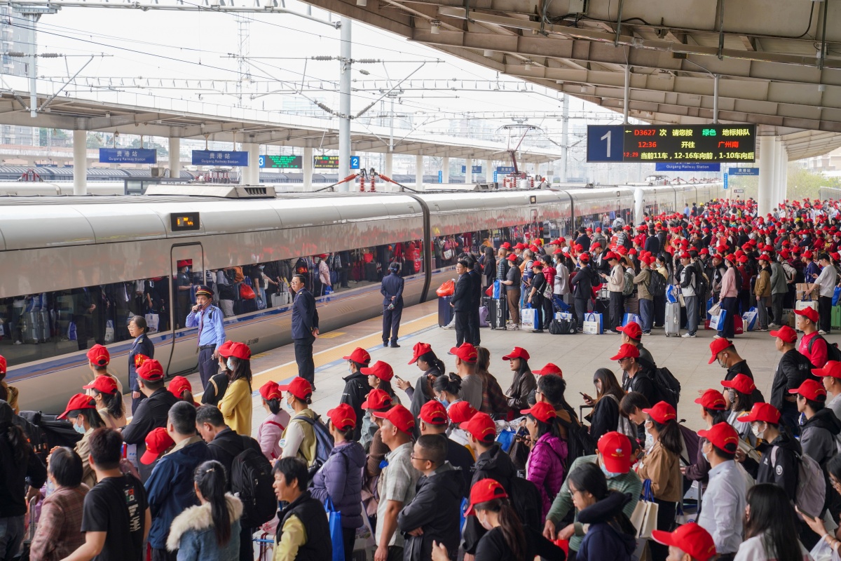 Îñ¹¤ÈËÔ±ÔÚ¹ó¸ÛÕ¾´î³ËרÁС£×ÔÖÎÇøÈËÁ¦×ÊÔ´Éç»á±£ÕÏÌü¹©Í¼ ¾ÝÁ˽⣬×÷ΪÀÍÎñÊä³ö´óÊ¡£¨Çø£©£¬¹ãÎ÷ÿÄêÓÐ600¶àÍòÈ˸°ÔÁÎñ¹¤£¬´ËÏîÓÉÔÁ¹ðÁ½Ê¡ÇøÈËÁ¦×ÊÔ´Éç»á±£Õϲ¿ÃÅЯÊÖ¹úÌúÄÏÄþ¾Ö¿ªÕ¹µÄ¡°µã¶Ôµã¡±Ë͹¤·þÎñ£¬·ÑÓÃÓÉÕþ¸®È«¶î³Ðµ££¬×Ô2020ÄêÆðÒѳÖÐø¶àÄꡣΪ±£ÕÏ·µ¸Ú·˳³©£¬Ìú·²¿ÃÅ¿ª±Ù°²¼ì½øÕ¾ÂÌɫͨµÀ£¬¶àµØ³µÕ¾°²Åʤ×÷ÈËÔ±ºÍÖ¾Ô¸ÕßÌṩ×ÉѯָÒý¡¢ÐÐÀî°áÔ˵ȷþÎñ£¬À´±ö±±Õ¾»¹ÌØÉèÎñ¹¤ºò³µÇø£¬Å¯ÐÄ·þÎñÈ«³ÌÏà°é¡£