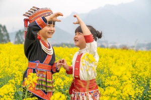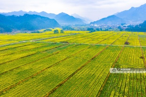 早春时节,来宾市金秀瑶族自治县三江乡2500多亩油菜花渐次盛开,浓浓春意扑面而来。图为油菜花田与村庄、民居、群山相映衬,宛如一幅早春田园画卷。通讯员 高如金 潘宇 摄(广西云-广西日报)
